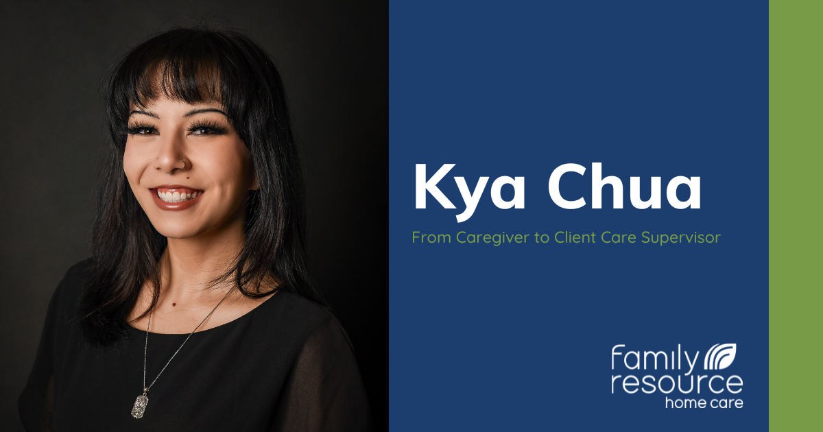 The Kya Chua home care journey began when she joined Family Resource Home Care at just 19 years old. She admitted she “hopped from job to job and dreaded every clock-in,” unsure of what her long-term path would look like. When she applied to Family Resource Home Care, her very first shift was a 12-hour overnight dementia case, and she was “terrified” (she says this while laughing).
